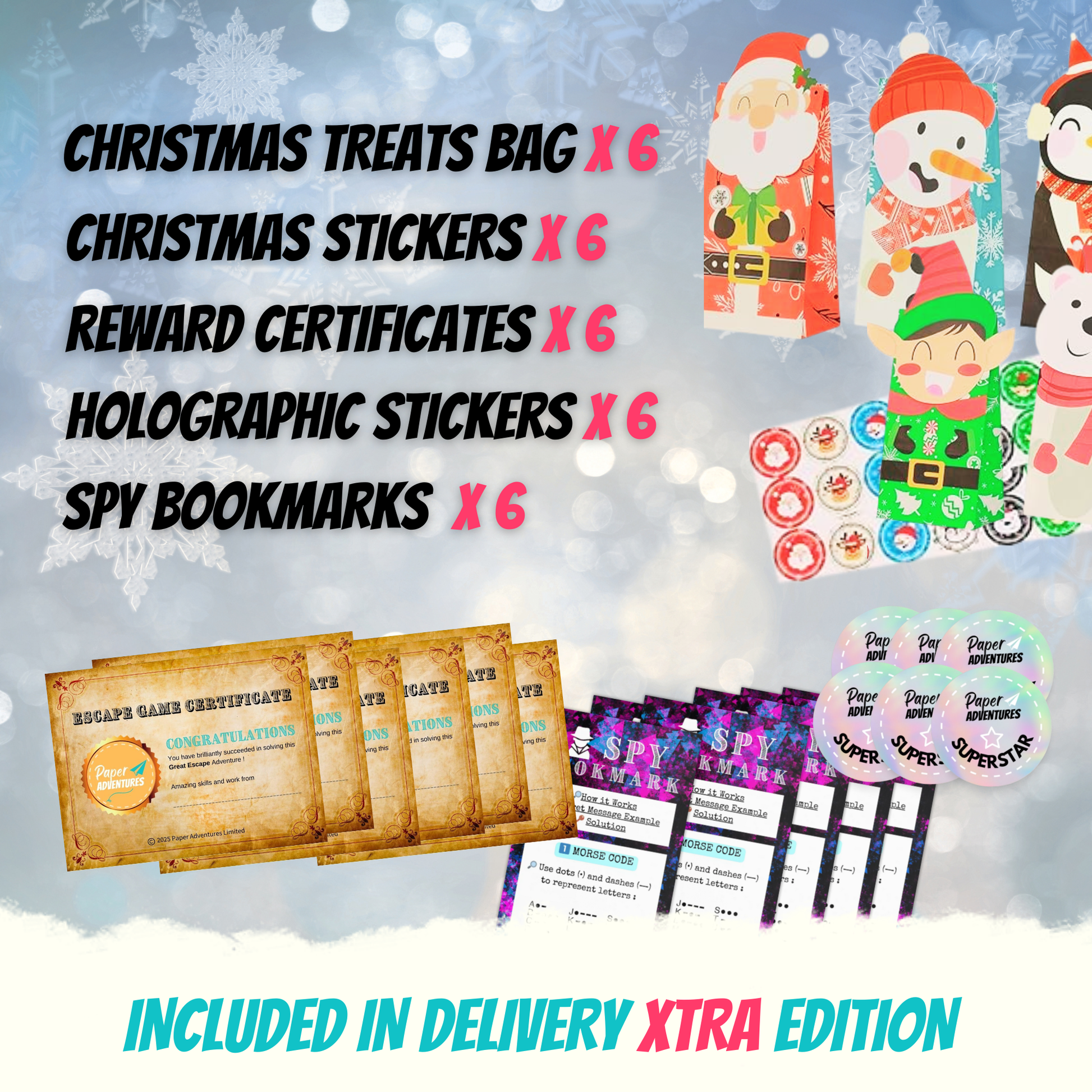 Ā Great Christmas Escape - our escape room for kids kit printed in quality 120g paper as per Delivery Pack Edition