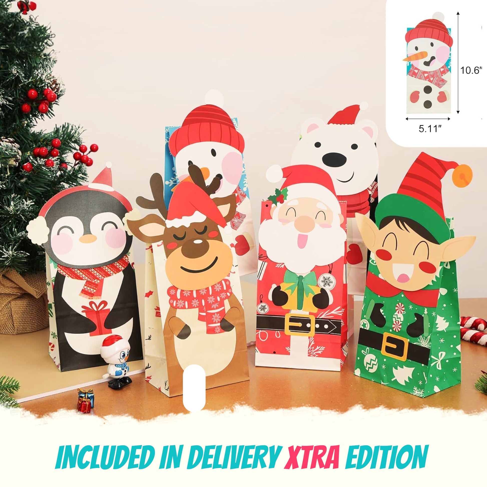 Ā +6 Christmas Paper bagsĀ ā Christmas Treat or party bags (21cm x 11.5cm x 8cm) with fun spooky design, perfect for Halloween treats or all items in this bundle.